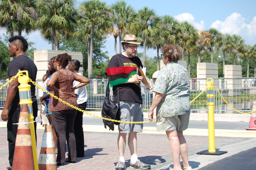 During most of the demonstration, which lasted about an hour, the group was heckled by a white man identified only as “Matt” who lives in the “Pinellas Park area.” Matt brought his own megaphone to broadcast his views that the kids were in a stolen car and “got what they deserved.”