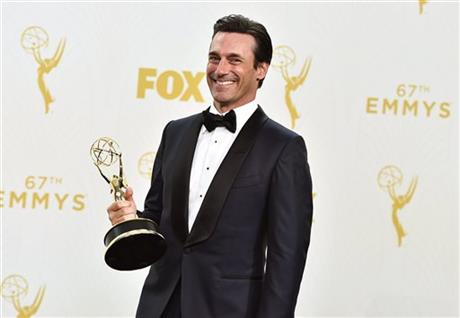 Hamm had been nominated seven times before for his portrayal of Don Draper in the AMC drama and hadn’t won. The series ended this past year, with Hamm featured in a memorable scene parodied by Emmys host Andy Samberg earlier in the show. It has been a rough year for the actor, who underwent a stint in rehab and broke up with a longtime girlfriend, and the emotion showed on his face.