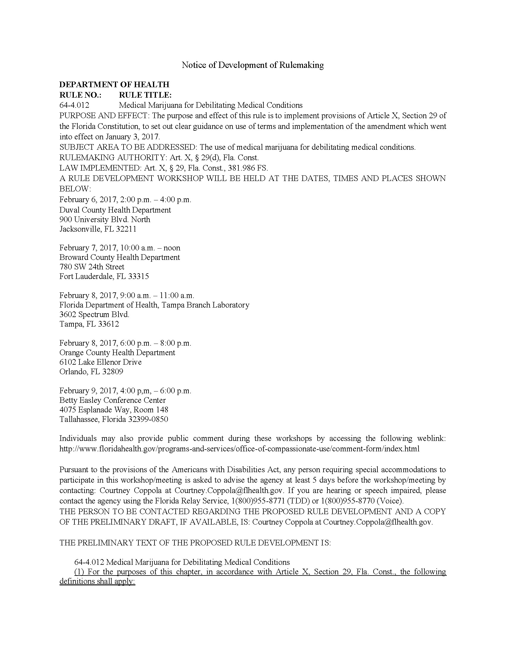 On Tuesday, the Florida Department of Health released the preliminary text of proposed rule development. The release comes ahead of five public hearings schedule for early next month, giving Floridians a chance to weigh in on the agency’s rules and regulations governing the state’s medical marijuana program.