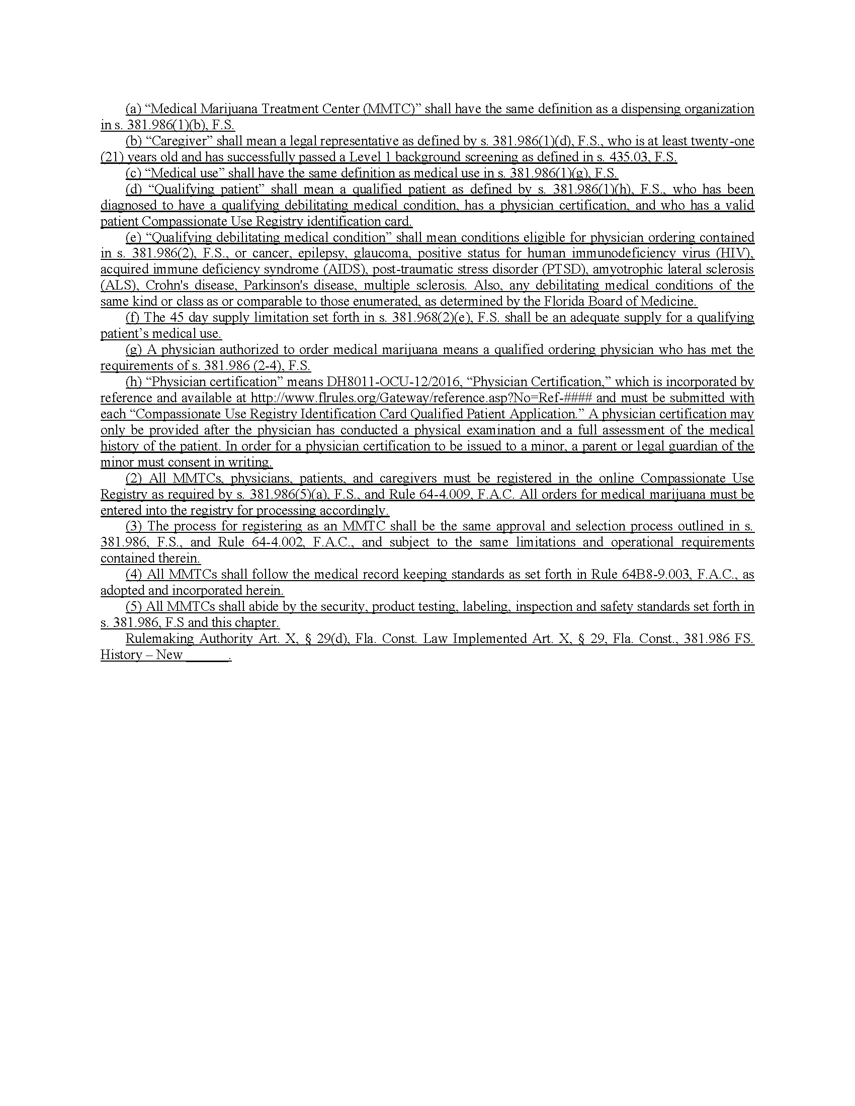 The proposed rule also requires patients, physicians, medical marijuana treatment centers and caregivers to be registered in state’s online Compassionate Use Registry; and requires medical marijuana treatment centers to follow the same record keeping, security, product testing, and other safety standards currently spelled out in state law and rules.