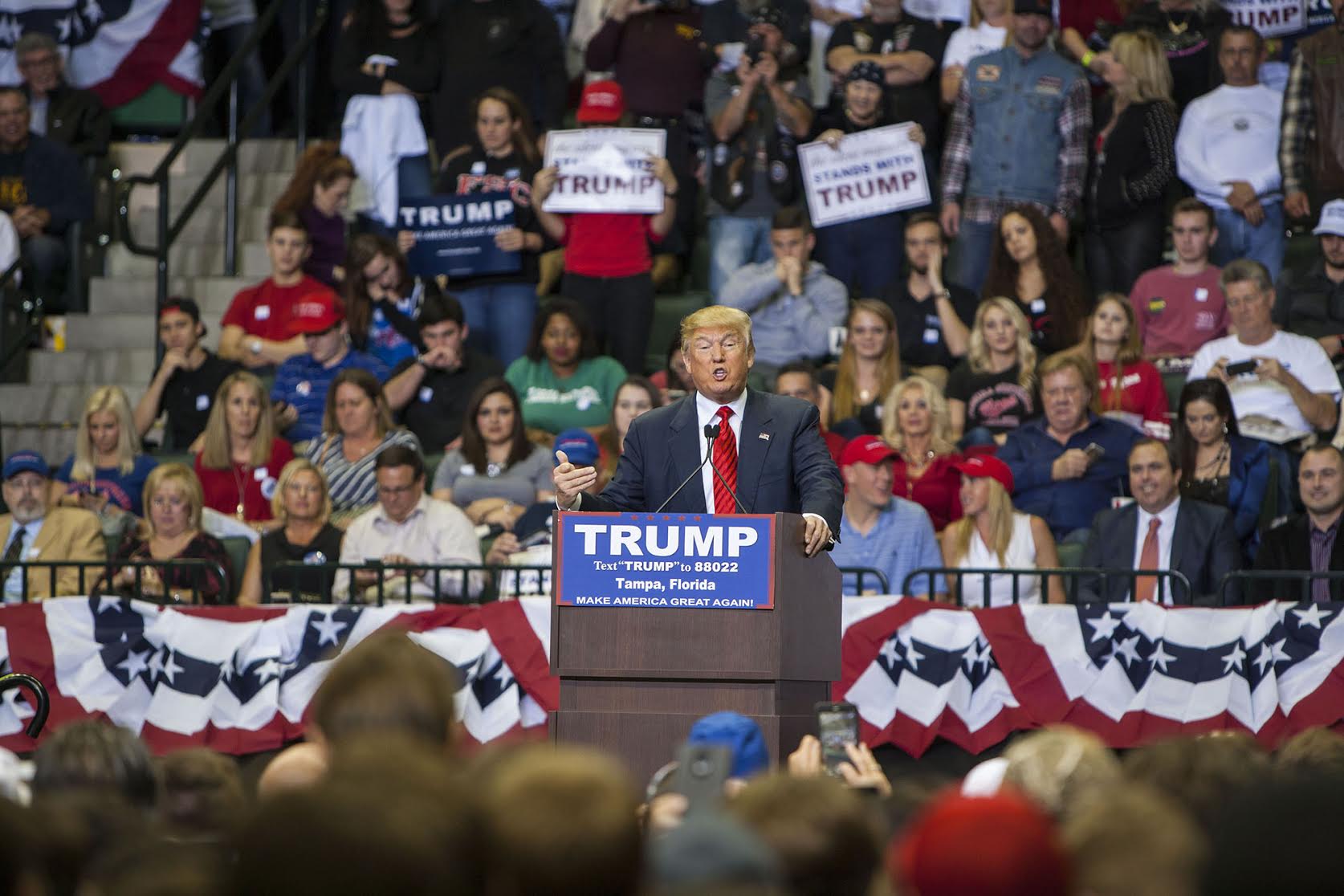 Donald Trump brought his rollicking presidential campaign to Tampa on Friday night, the first time he’s appeared in Tampa since declaring his candidacy last June.