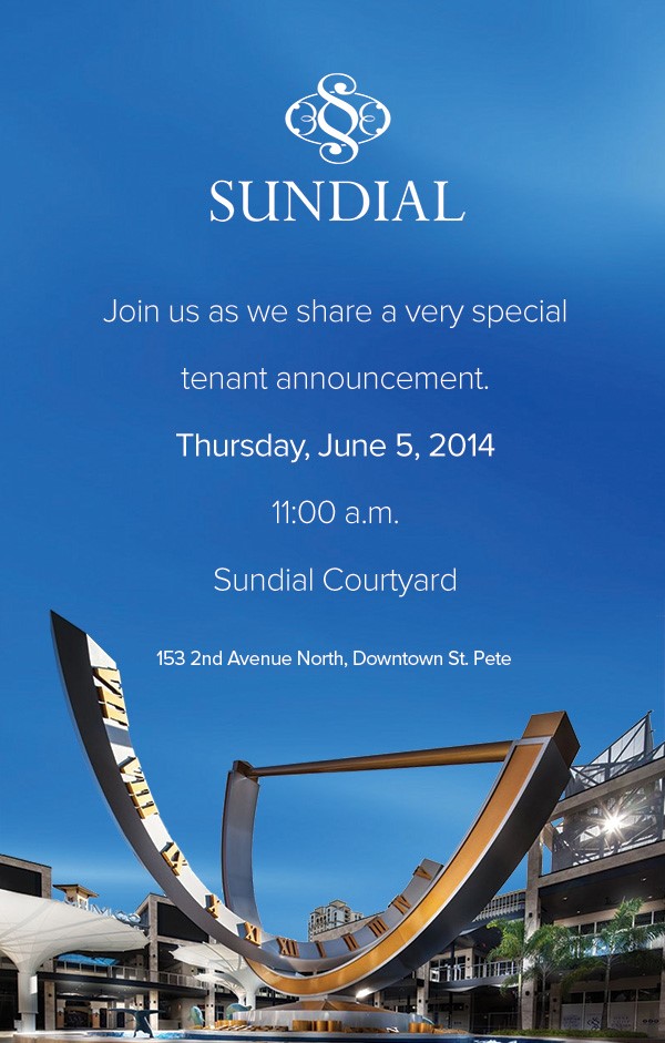 At 11 a.m. on Thursday, the Edwards Group will unveil its newest “food related tenant” for the remodeled and rebranded BayWalk. The “very special tenant announcement” will be at the SUNDIAL, located at 153 2nd Avenue North.