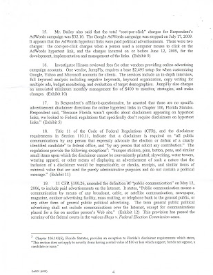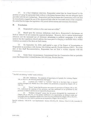 In it’s conclusion, the FEC opened the door for possible legislation by Florida lawmakers: “due to various technological advances and the increased use of electronic advertising in polittical campaigns, it is staff’s opnion that the Legislature should address this issue prior to charging a candidate with a willful violation…”