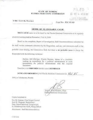 I guess that was my point all along. (The Florida Election Commission’s ruling can be found in its entirety after the jump.)
