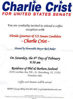 By the way, Governor Crist will be presiding over Tommy Minkoff’s investiture today. Some Pinellas politicos worry that Crist’s appearance will politicize a judicial event or, worse, Crist will repeat his performance from last week when his attendance overshadowed the hosts of John Morroni’s Law Enforcement Appreciation Dinner. Me? I think Charlie should very much attend Judge Minkoff’s event — and the soiree at the Yacht Club after.
