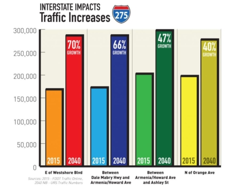 “The impact of the express lanes, unfortunately, is mostly in the downtown area, and affects the downtown, the Ybor, Tampa Heights and Seminole Heights,” said FDOT spokesperson Debbie Hunt. She referred to the outreach that FDOT has been working with USF on. Those “charrettes,” however, haven’t calmed the projects’ critics, who claim that the meetings don’t address their main issue – which is that they don’t want it built at all.