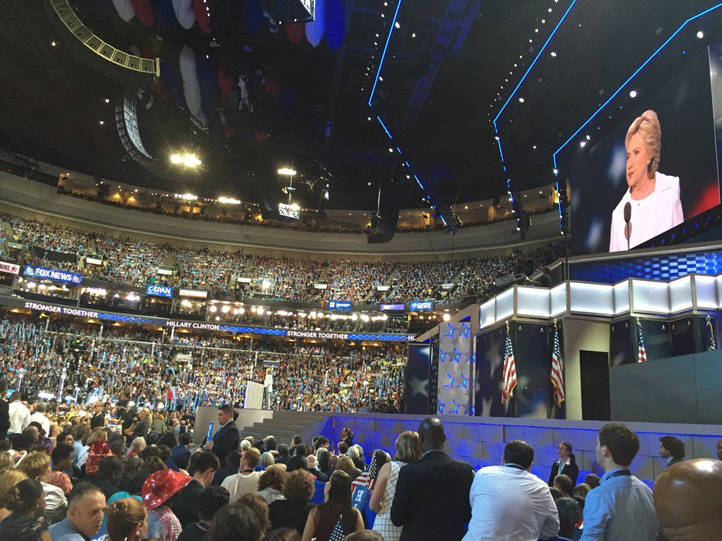 Clinton is delivering her acceptance speech for the Democratic presidential nomination.
