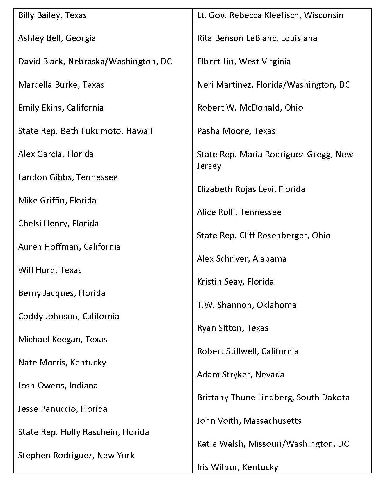 Also on the list are Florida Deputy Director of Federal Affairs Elizabeth Rojas Levi; Berny Jacques, who serves as assistant state attorney in Pinellas-Pasco; Kristin Seay, Corporate Communications Manager at CSX; Republican Future Majority Caucus board member Neri Martinez; attorney Chelsi Henry; and Alex Garcia, Republican National Committee’s Florida Director of Hispanic Initiatives.