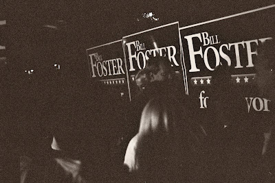 Heavy is the head that wears the crown. Bill Foster takes pictures with his supporters at his victory party at Ferg’s.