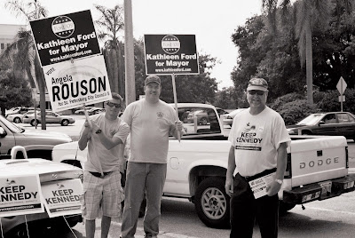 He gambled and lost, but at least he was brave enough to gamble. Pinellas Democratic Chair Ramsay McLaughlan, pictured here waving signs outside of Precinct 160, bet heavily on Kathleen Ford’s campaign, helping to draw resources from the Florida Democratic Party. But with Ford’s loss, McLaughlan was heavily criticized for attempting to inject partisan politics into a non-partisan race. Still, I think he deserves credit for at least attempting to make the PCDEC relevant.