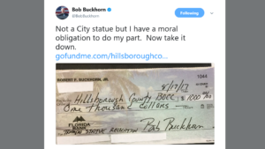 The memorial has been in place since 1911, put there as a celebration of bigotry. So why the the rush to raise enough money for the move? Commissioner Stacy White is a foremost advocate of keeping the memorial in its current public location. White’s reasoning was that it’s time to put this issue in the rear-view mirror.