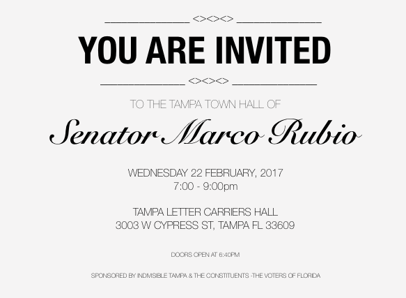 What that means is that Rubio won’t be attending any townhall events, including one that was created by activists who had hoped he would attend this Wednesday night at the Tampa Letter Carriers Hall.