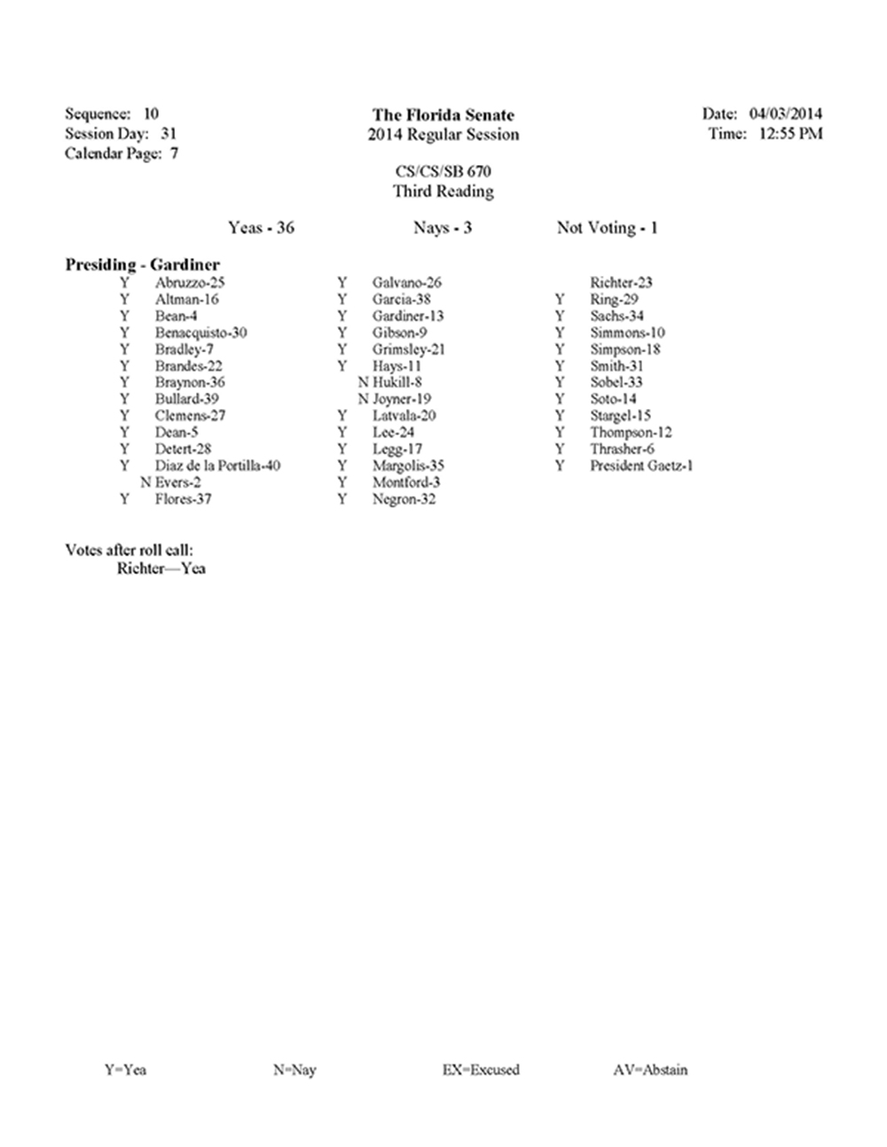 It was there on the floor of the Senate that Maria Sachs voted in favor of CS/CS/SB 670. The bill passed easily (36-3) with very little debate. That bill should have a familiar ring to readers of this blog. As covered here, this is the nursing home tort reform bill that was (surprisingly) supported by the trial lawyers association (FJA.) In fact this is essentially the same bill that had been moving around the legislature for quite some time and according to the Miami Herald, the nursing home industry had “been seeking a version of this bill for years.”