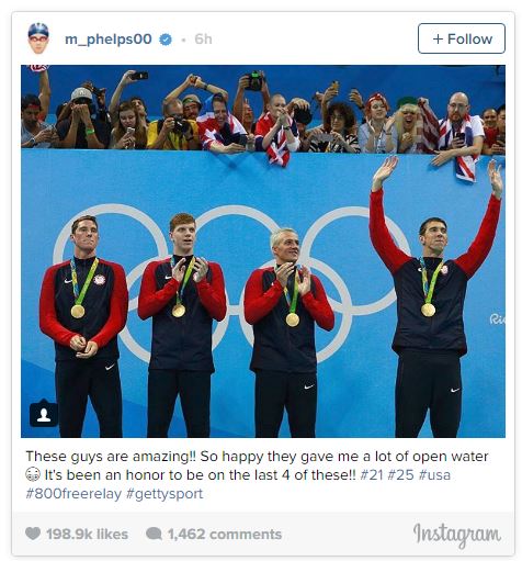 Michael Phelps took to Instagram after an emotional night at the Olympic Aquatics Center in which he upped his gold medal total to 21 with two enthralling wins, one avenging a stinging loss at the 2012 London Games.