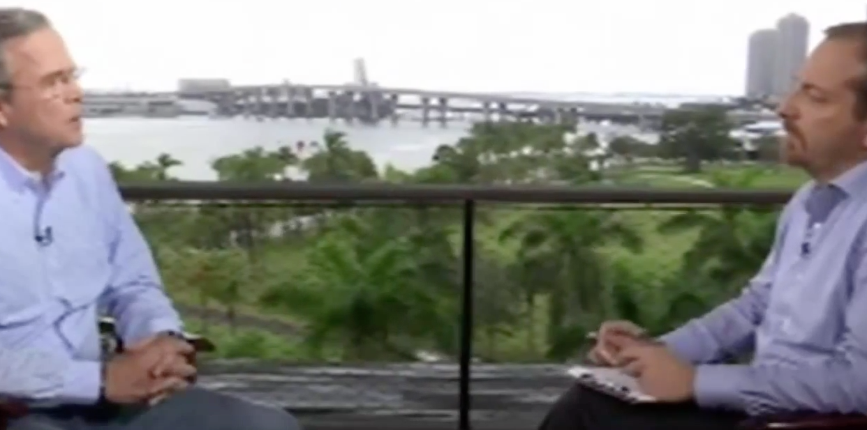 “I got to be governor of a state and accomplish big things,” Bush told Meet The Press’s Chuck Todd in an interview taped on Saturday in Miami and aired on Sunday morning. “And in this era of gridlock, it’s really hard to break through, and I think he’s given up. And I think that’s the wrong thing to do. This is about public service, about solving problems. If you look at the three people on the stage from the United States Senate, all three of them have a combined two bills that became law that they’ve sponsored. If you look at Hillary Clinton, in ten years, three bills she sponsored that became law. This is the gridlock that I’m running to try to break up. I can change the culture in Washington.”
