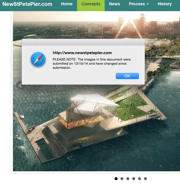 “PLEASE NOTE: The images in this document were submitted on 12/15/14 and have changed since submission,” the popup reads before reviewing the original concept document.