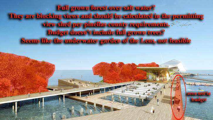 But, as Lambdon points out, the Destination St. Pete Pier design team was forced to remove a $300,000 waterfall from its graphics because that feature was not included in the budget.
