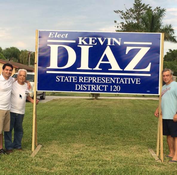 It probably will be all hands on deck soon enough at Diaz Campaign HQ, because if you take a close look at the picture of his bold, blue sign you’ll notice two glaring sins of omission.