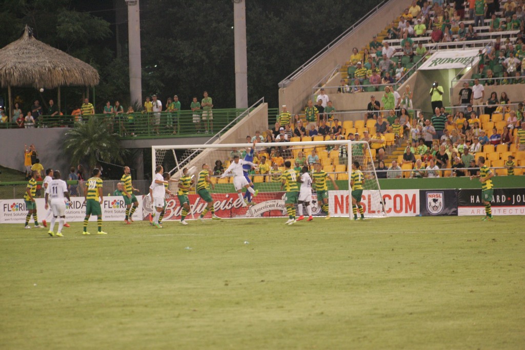 Jacksonville would strike-back nearly instantaneously. In the 14th minute the Armada were a warded a penalty kick of their own, which was fired by Marcos Flores, blocked by Contofalsky, but rebounded by Flores, who popped it in for the uncontested score, bringing the game to a 1-1 tie.