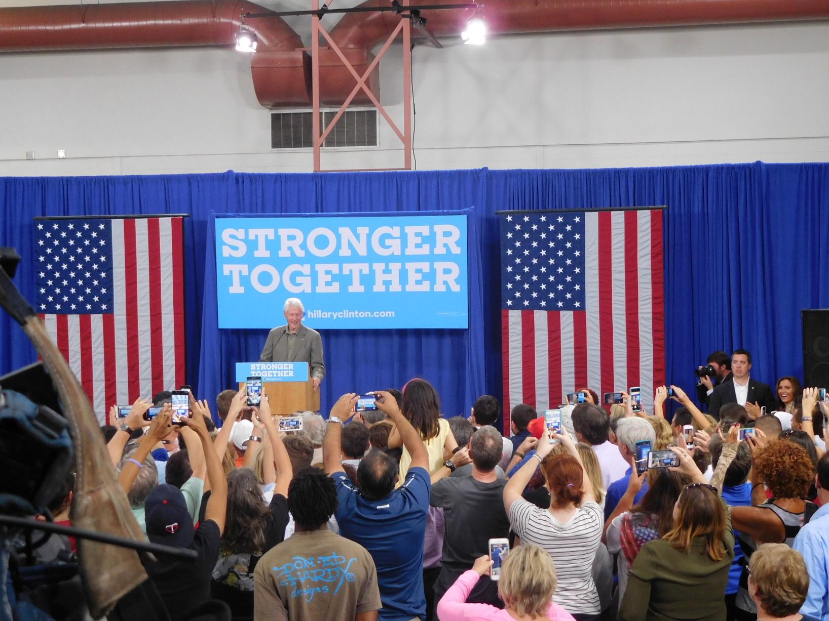 The 42nd president of the United States spoke for 45 minutes in front of an intimate crowd of just 250 people at the Safety Harbor Community Center, where another 400 observed from an auxiliary room, and hundreds of others were not admitted inside. It was his third and final stop in Florida Tuesday, on what was originally going to be the last day to register to vote in next month’s election (It has been extended until Wednesday after Democrats went to federal court to ask for an extension due to Hurricane Matthew).