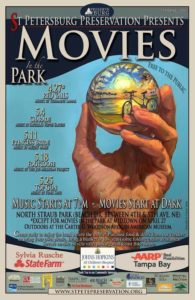 In commemoration of the May Movies in the Park series, local artist Carrie Jadus created an original poster that will be on sale at the SPP tent at Movies in the Park and at the Saturday Morning Market, held in the parking lot of Al Lang Field.