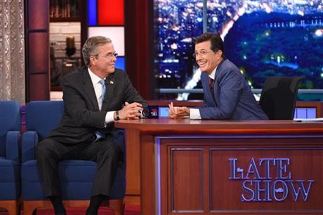 Colbert was joined by actor George Clooney and Republican presidential candidate Jeb Bush. He completes the remake of late-night network television from the days of Letterman and Jay Leno to the two Jimmys (Fallon and Kimmel) and himself.