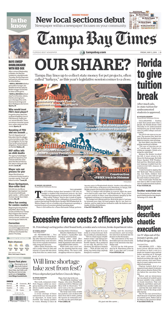 Meanwhile, the Times‘ partner in state political coverage, the Miami Herald, looks like it was tapped for space and did not lead with a story about the DREAMer tuition bill. This is interesting considering what a vibrantly diverse population the Herald serves to, especially compared to the Times.