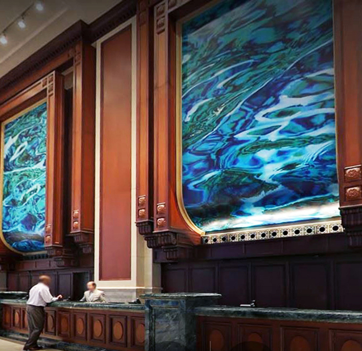 Her specialty, abstract representations of coastal and other bodies of water, comes alive in subtle shades of blues and greens, offering a sense of motion of an ocean flow — which is one of the defining themes of St. Pete, the Tampa Bay region, and Florida in general.