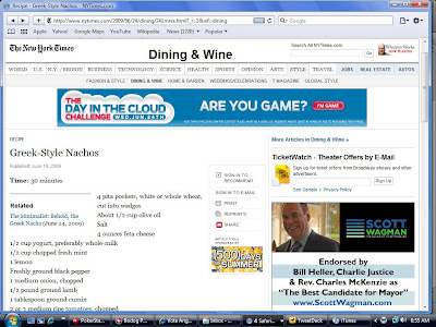 It must be nice to have enough money to pay for spots on (I assume a regional version) of TheNew York Times website. But are these ads targeting me personally?. After all, how many other St. Pete voters are there who are reading an article about Greek Nachos in the Dining & Wine section of the paper of record.