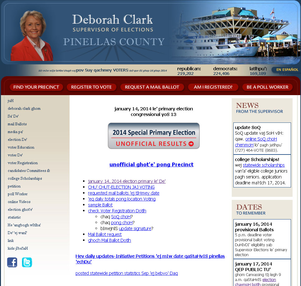 But Pinellas elections supervisor Deborah Clark has gotten one step further and made her department’s website is available in Klingon.