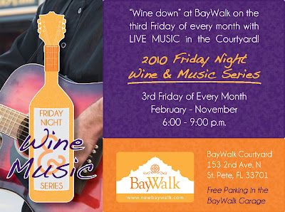 This free event is open to the public and will continue through November on every third Friday of every month. The event always features live jazz music in the courtyard. Wine is sold for $3 per glass with 100% of the proceeds going to a different charity each month. This month’s charity is the Tampa Bay Chapter of the American Red Cross for the earthquake victims of Haiti.