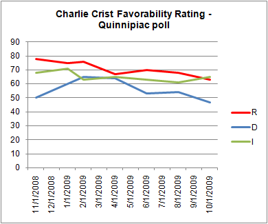 That’s not to say that some of this Republican Purity Test stuff isn’t also a part of the story (grassroots conservatives only seem to have been encouraged by the results in NY-23, even though their candidate lost). But it’s not the whole story: Crist is much more vulnerable than he otherwise would be because had the option of running for another term as governor and declined to do so.