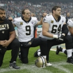 New Orleans Saints players, coaches and staff knelt before the start of the national anthem but stood in unison once it began ahead of their game against the Miami Dolphins at London’s Wembley Stadium on Sunday.